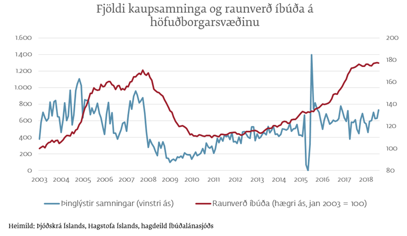 Fjöldi viðskipta á íbúðamarkaði á höfuðborgarsvæðinu er með ágætu móti þó íbúðaverð hækki nú minna en áður. 728 kaupsamningum vegna íbúða var þinglýst í ágúst sem eru um 15% fleiri samningar en í júlí og 46% fleiri samningar en í ágúst í fyrra. Undanfarna 12 mánuði, þ.e. frá september 2017 til ágúst 2018, var hins vegar nokkurn veginn jafn mörgum kaupsamningum þinglýst eins og síðustu 12 mánuði þar á undan.